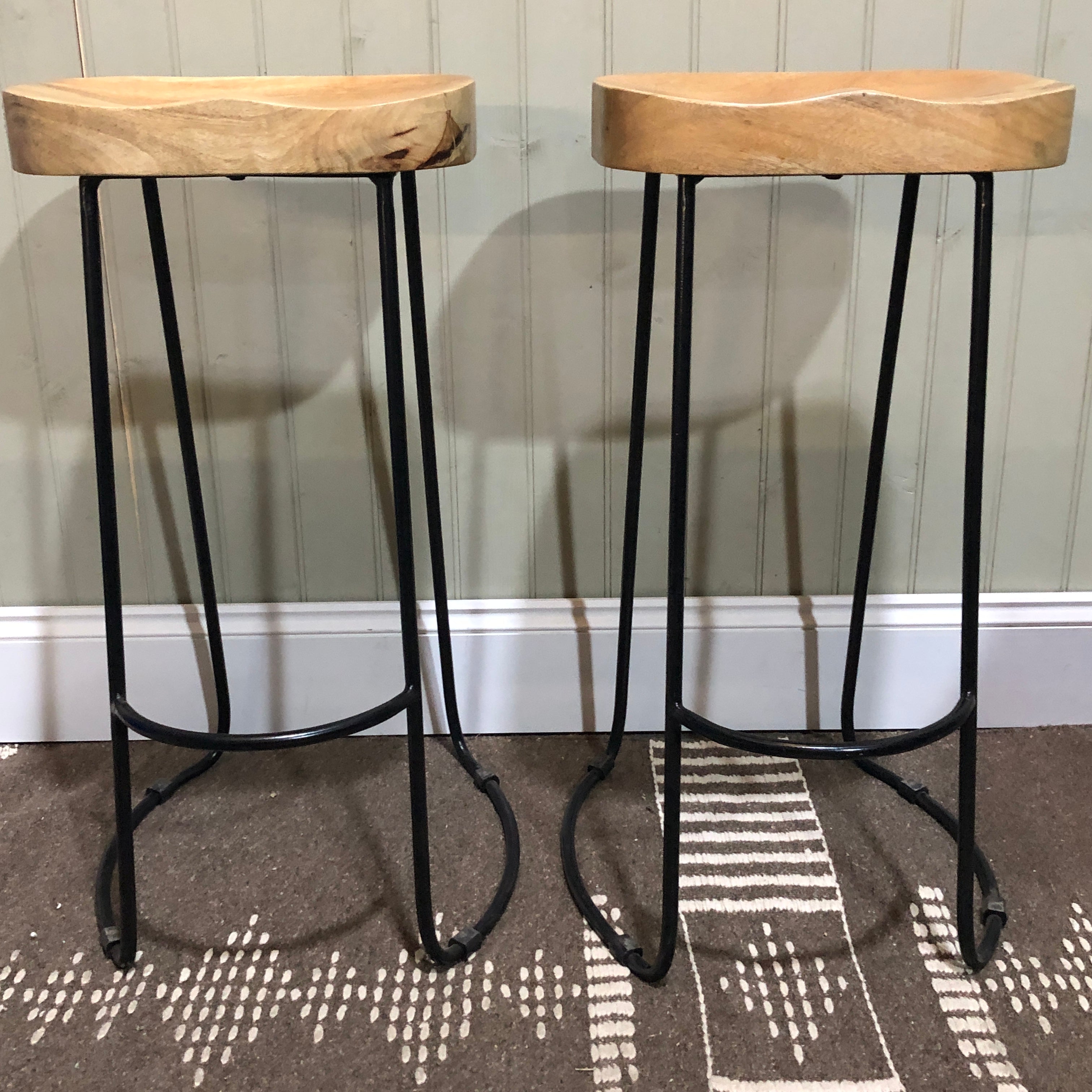 Pair of Weathered Oak and Metal Stools - CLEARANCE