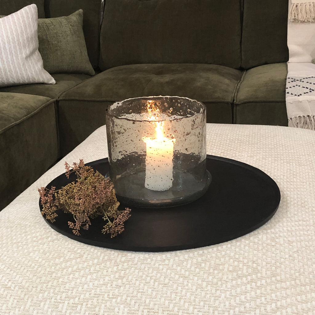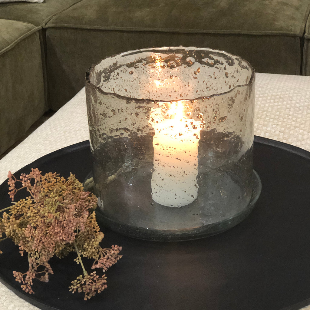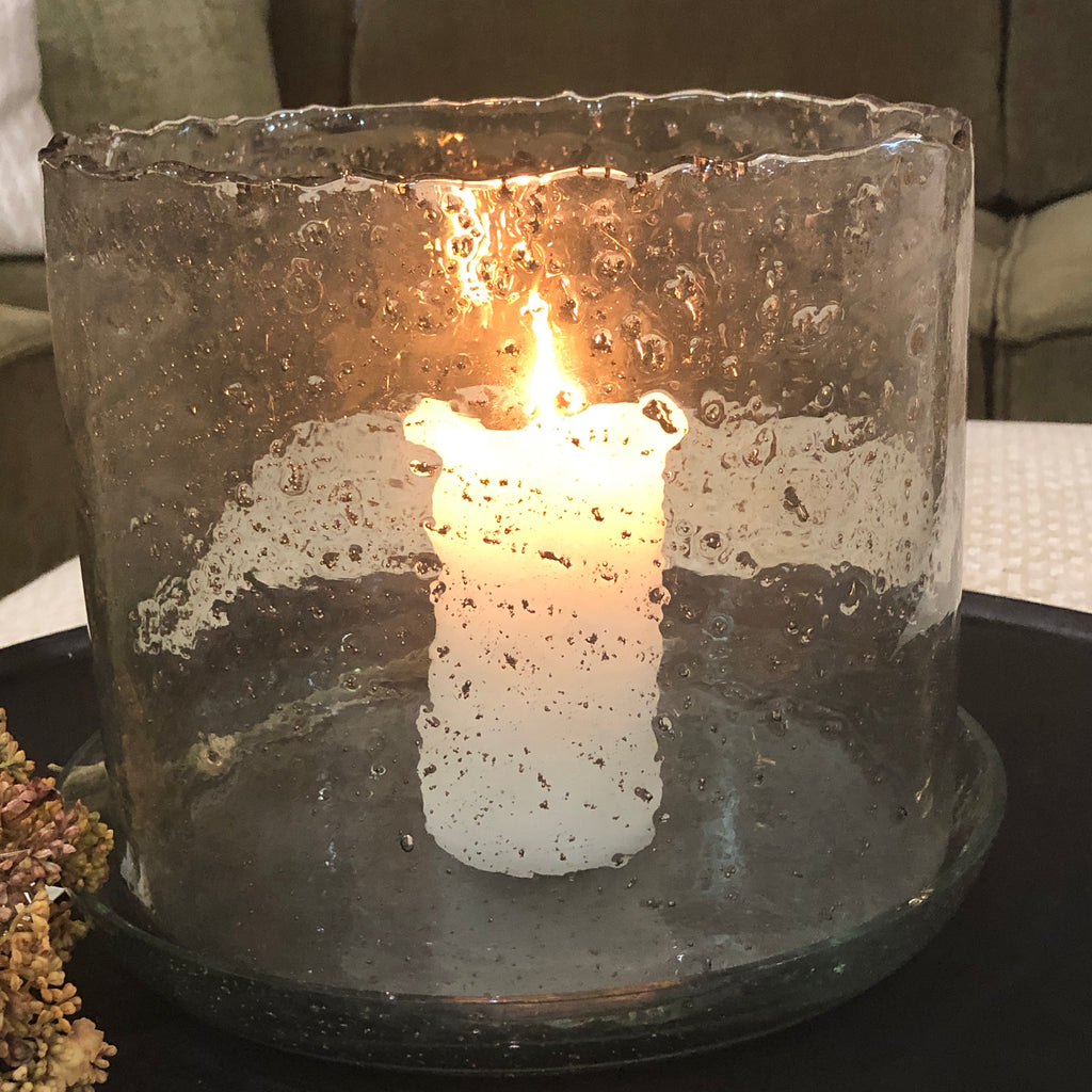 Large Bubbled Glass Hurricane and Plate 28cm