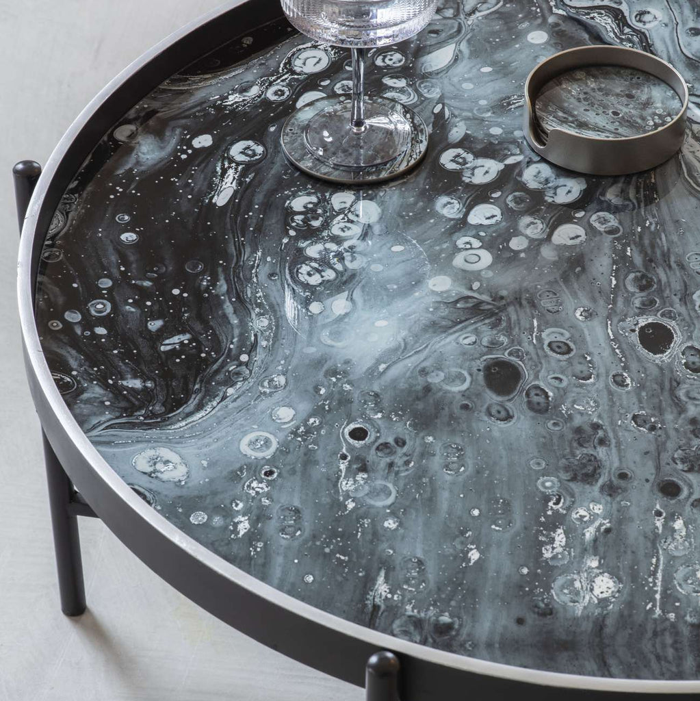 Atlas Effect Coffee Table with Nesting Pouffe 80cm