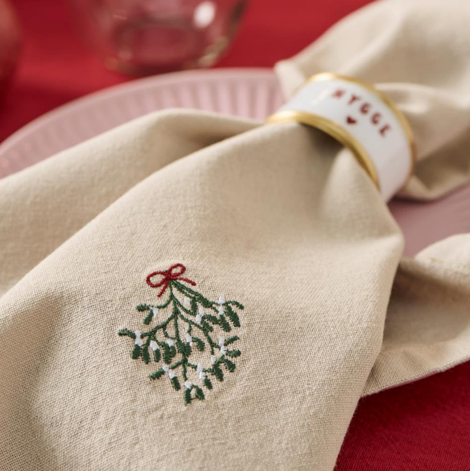 Mistletoe Motif Linen Coloured Napkin 40x40cm