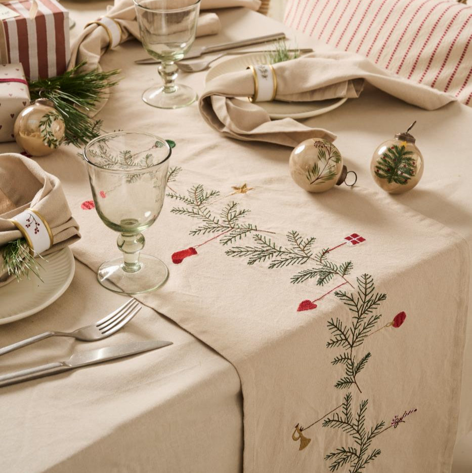 Table Runner with Spruce and Christmas Decoration Motifs 160cm
