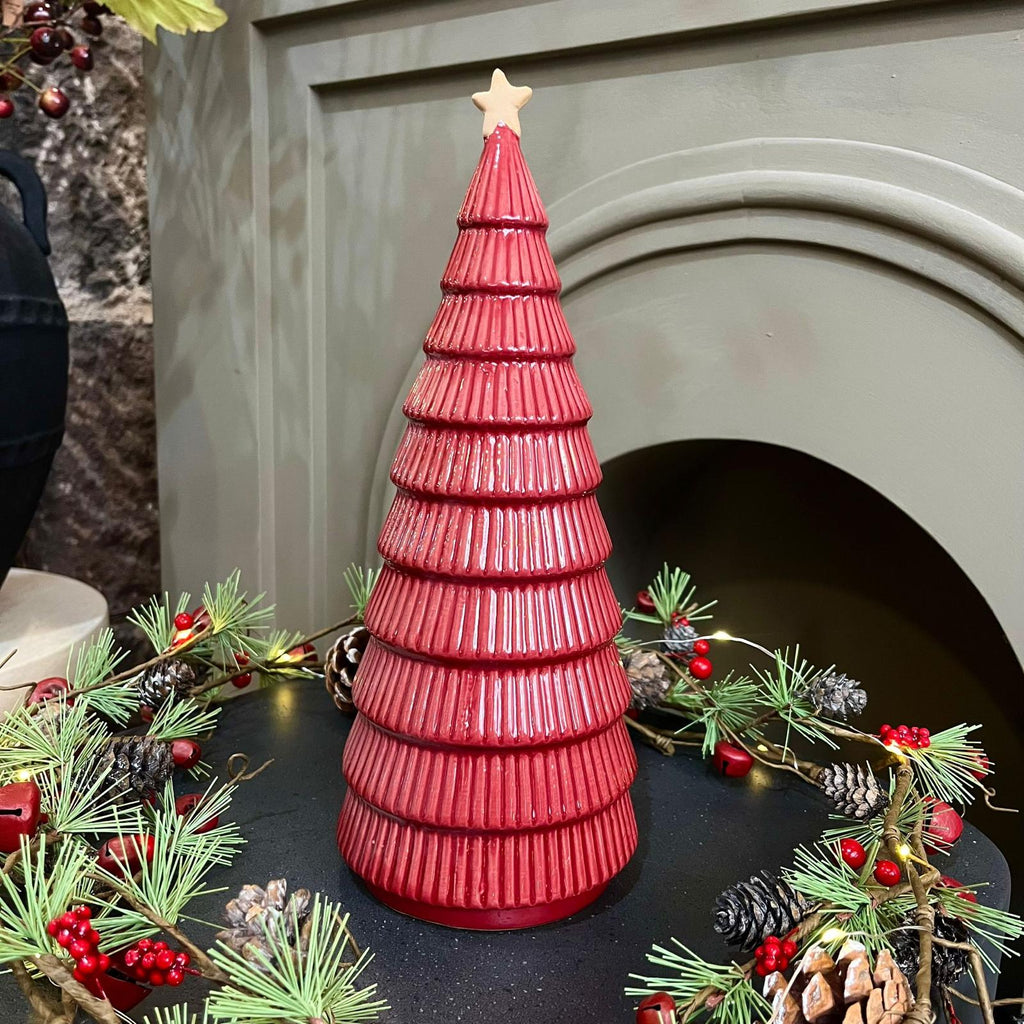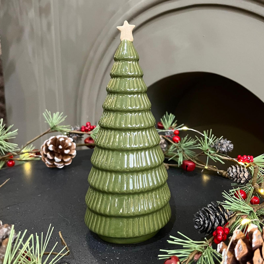 Glazed Ceramic Tree Ornament with Textured Detail and Star - Size Choice