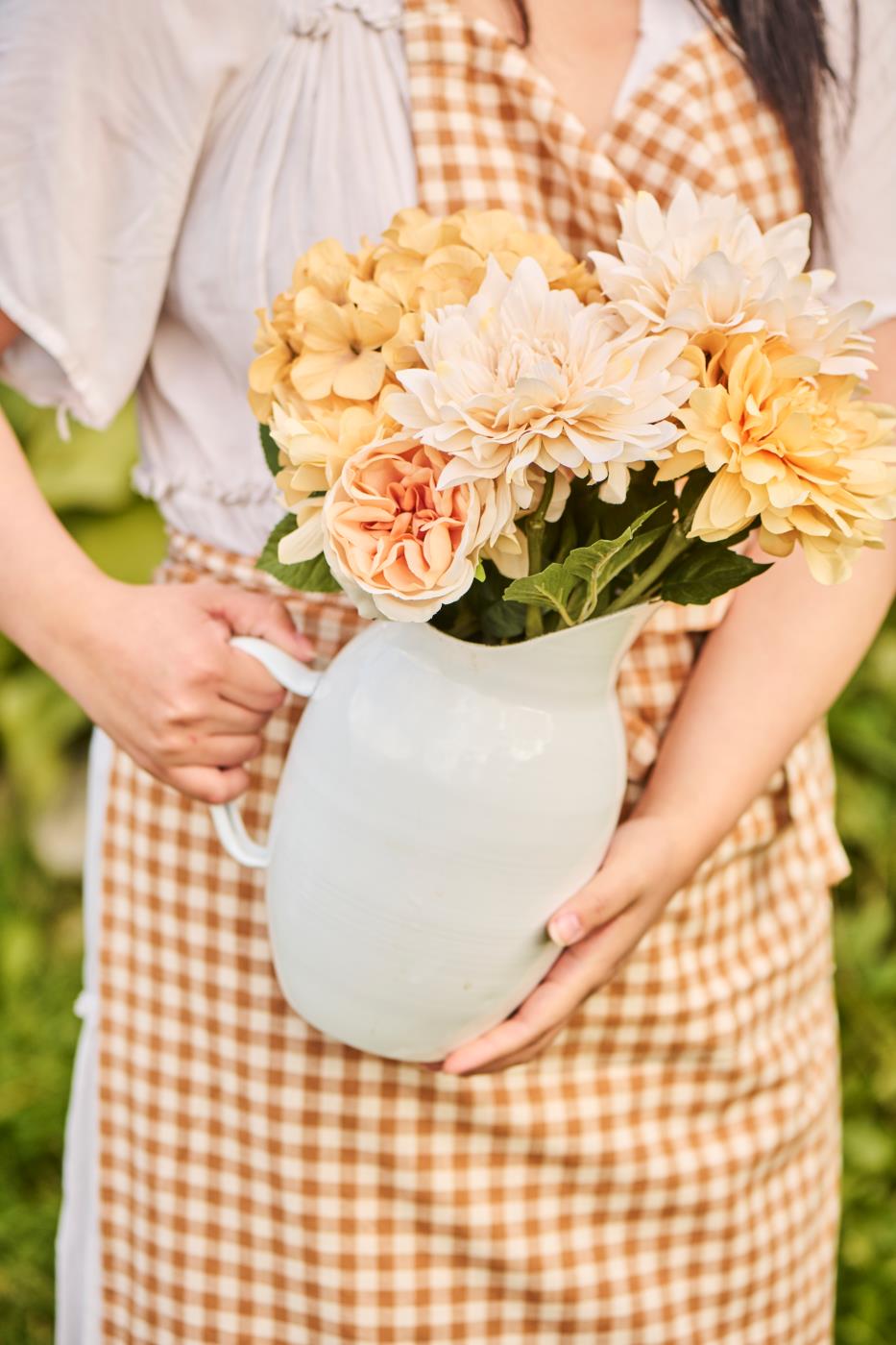 Golden Faux Hydrangea Stem 60cmBring effortless elegance to your seasonal displays with this lifelike faux Hydrangea stem. Standing at 60cm, it features a full bloom, capturing the romantic charm of fresh florals without the maintenance. Its natural appearance makes it ideal for spring and summer styling, whether arranged in a statement vase or layered within a larger composition. Perfect for adding a touch of refined beauty to any interior. SIZE:H:600mm. If you have any questions, please use the contact link below to speak to us. Or use the CHAT WITH US button for further information. |