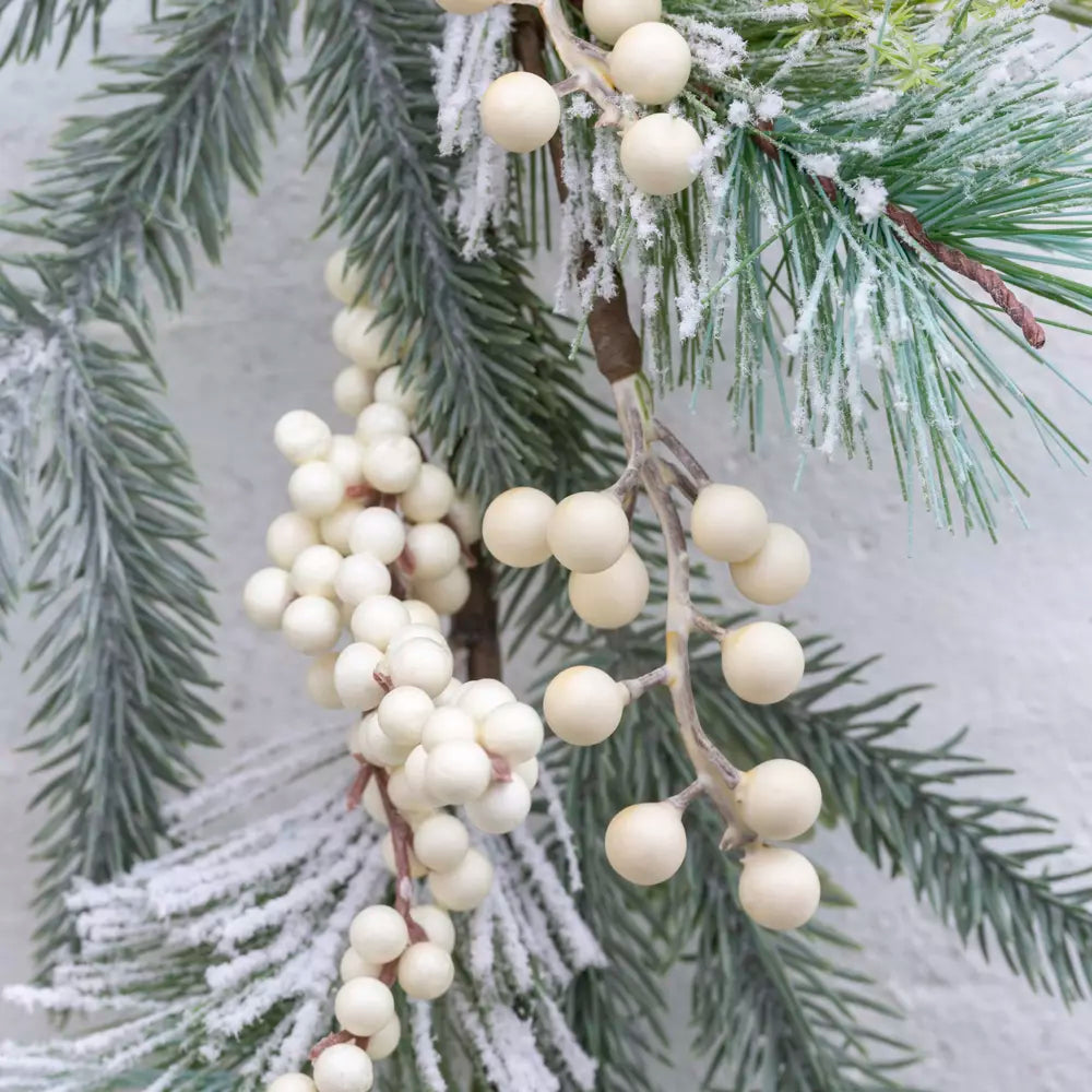 White Berry and Fircone Spray 70cmEnhance your Christmas décor with this 70cm Christmas white berry faux flower spray. It is a pretty mix of fern cones, fir tree foliage, and lush greenery, artfully dusted with an icy effect. It’s perfect for the Festive Décor Enthusiast seeking an enchanting yet realistic touch for their holiday arrangements. This festive sprig will definitely bring a spark of winter wonderland to your home. H: 70cm If you have any questions, please use the contact link below to speak to us. Or use the CHAT WITH US button for further information. |