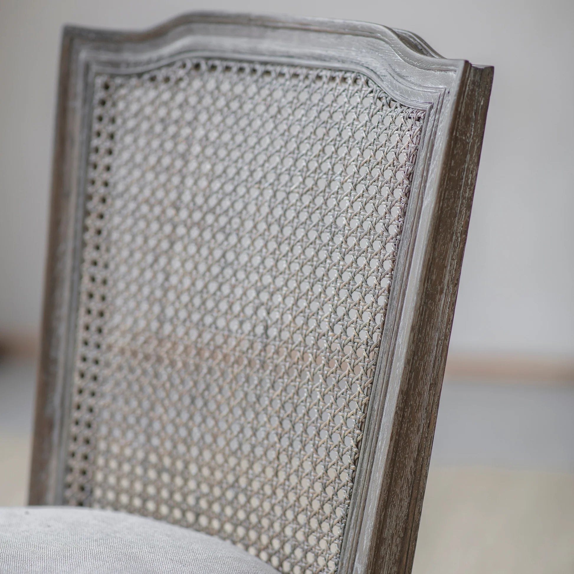 The Barton Bergère Dining Chair by One.World combines classic French design with modern comfort. Featuring a weathered oak frame, delicate rattan cane panels, and a linen-upholstered seat, it delivers both elegance and durability. Designed to complement the Barton Bergère Carver Chair or stand alone, this chair elevates your space with timeless sophistication. To maintain its beauty, avoid direct sunlight and opt for professional cleaning only.