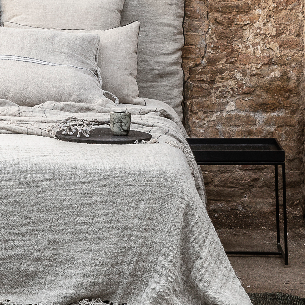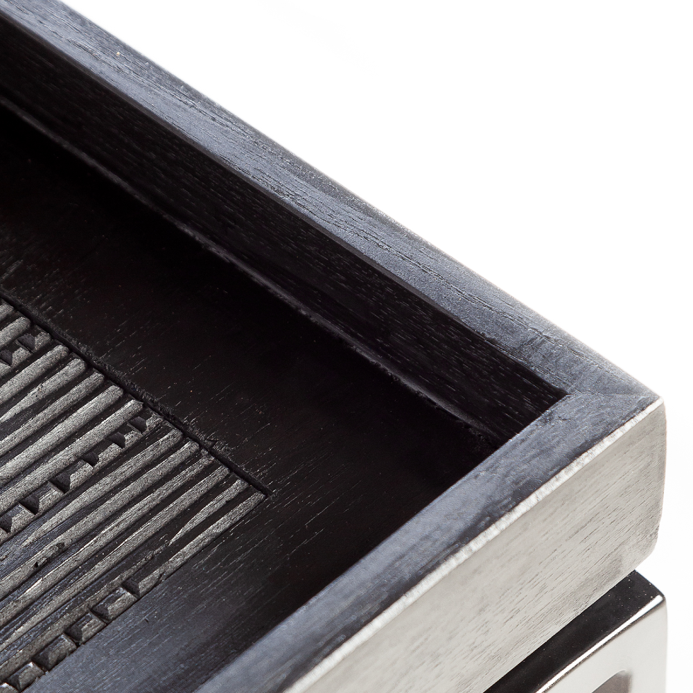 This fine handcrafted side table is an exclusive design piece, which combines its minimalist, Nordic-style appearance with quality traditional details, carved one by one into the surface of the wood, giving it its own unmistakable artisan value. The main structure, made of thin and elegant iron lines in black, combines perfectly with the square piece of the top, made of natural recycled teak and in black in this case. A sustainable and original piece of furniture, with an ethnic yet sober air, which will look great in the living room, kitchen or bedroom, in uncluttered environments and with other industrial style elements.