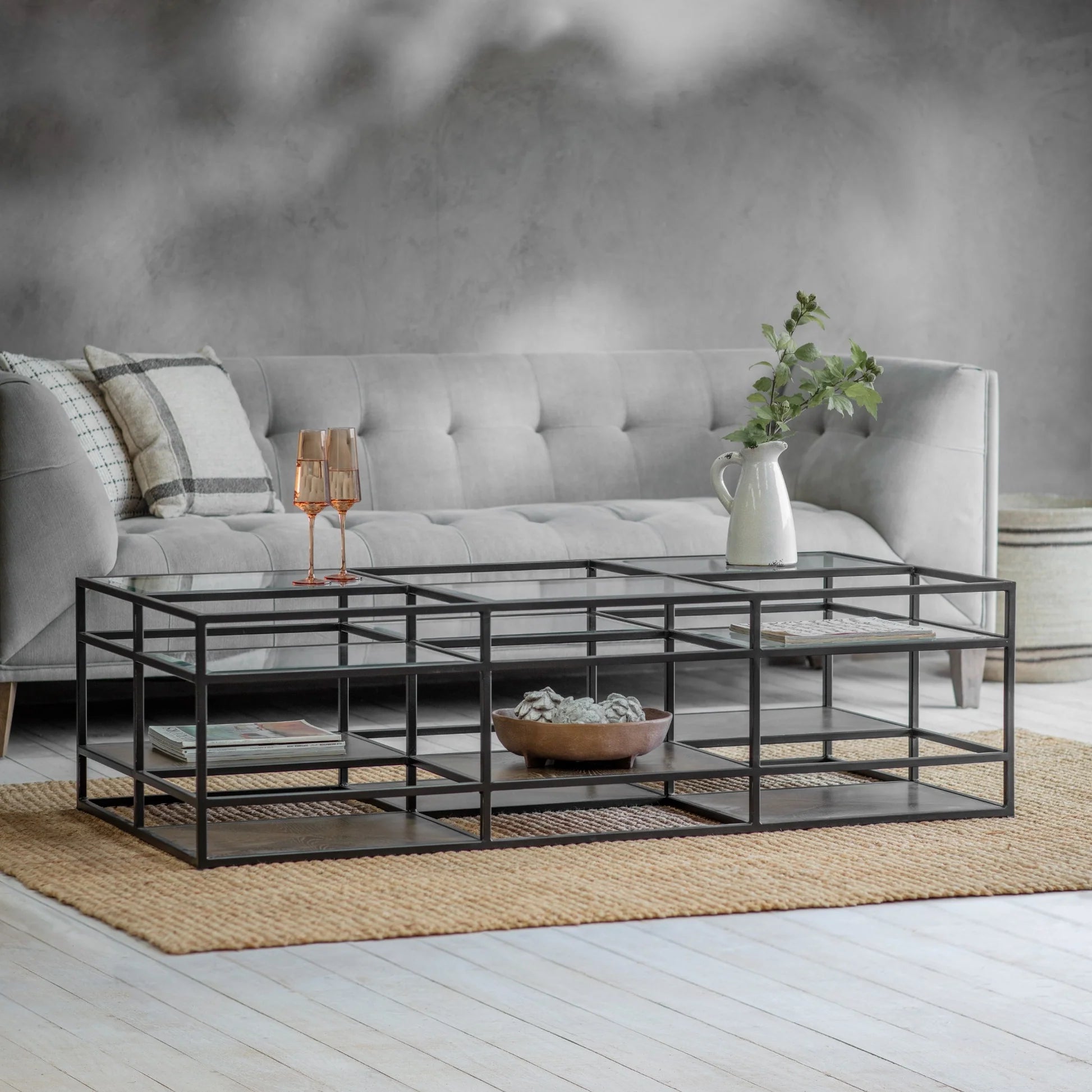 Butterworth Small Geometric Coffee Table 145cmThe Butterworth One.World Small Geometric Coffee Table combines iron, glass, and oak wood to create a modern and durable centrepiece. Measuring 145cm wide, 45cm high, and 70cm deep, it offers a balanced surface for your living space. Weighing 35kg, this table requires simple assembly, making setup straightforward. To maintain its finish, avoid harsh acidic cleaners and wipe clean with a dry cloth. This table is an excellent choice for those seeking a stylish yet practical addition to their home. Dimensions:W145cm H45cm D70cm Materials: Iron, Glass and Oak wood If you have any questions, please use the contact link below to speak to us. Or use the CHAT WITH US button for further information.