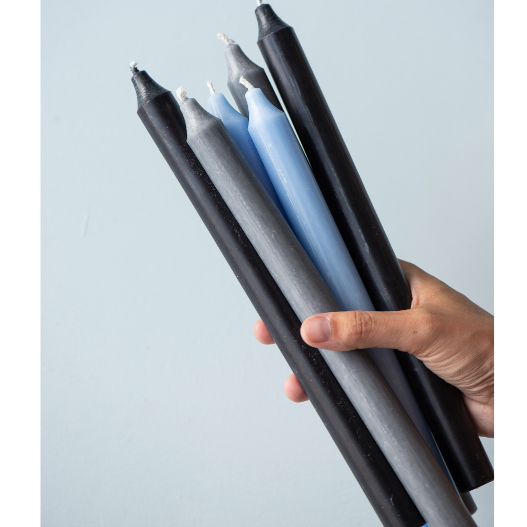 Grey Black and Blue Tones Tall Rustic Dinner Candles 29cm - Colour Choice