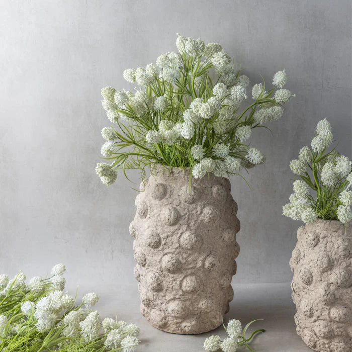 With a foraged vibe, the Meadow Thistle Bush is evocative of summery meadows and wild roadside beauty. The Meadow Thistle Bush has an understated beauty. Soft creamy flowers are gathered on stems with feathery foliage tendrils making this very easy on the eye. Amazingly versatile, this looks great on its own or as a support act to other blooms, and we’ll be using this everywhere.