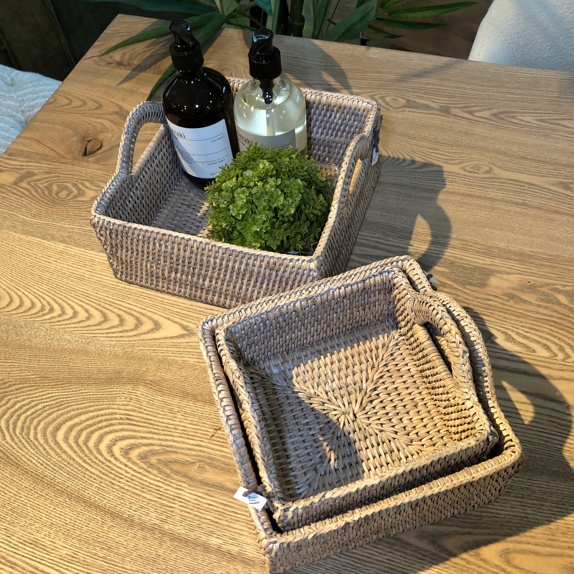 Rattan Square Baskets in Natural White Wash - Size Choice